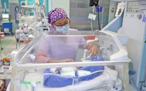 Detalló que en el hospital se cuenta con tecnología de vanguardia en la Unidad de Cuidados Intensivos con 20 lugares especialistas en Neurología, Cardiología, Cirugía Pediátrica, médicos neonatólogos y pediatras, personal capacitado en ultrasonido transfontanelar (cerebral), cardíaco y pulmonar, servicio de Radiología, así como personal de enfermería competente y calificado para el manejo de bebes pretérmino.