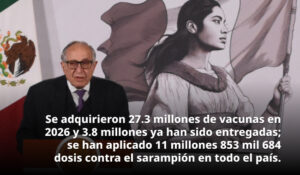 En 2026, el Gobierno de México adquirió 27.3 millones de vacunas, lo que garantiza el abasto necesario; de ellas, 3 millones 836 mil dosis ya han sido entregadas en lo que va del año.