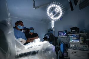 De acuerdo con información de la Clínica Universidad de Navarra (CUN), el uso del robot Da Vinci en cirugías permite un procedimiento menos invasivo, eliminación del temblor natural de la mano del cirujano y una mejor visualización del campo anatómico que se opera pues se trata de un equipo avanzado: